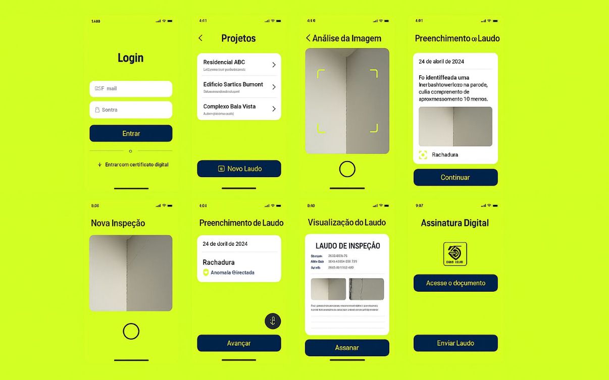 Nosso app vai permitir que o engenheiro registre tudo no momento da vistoria e já tenha uma prévia do laudo em mãos.